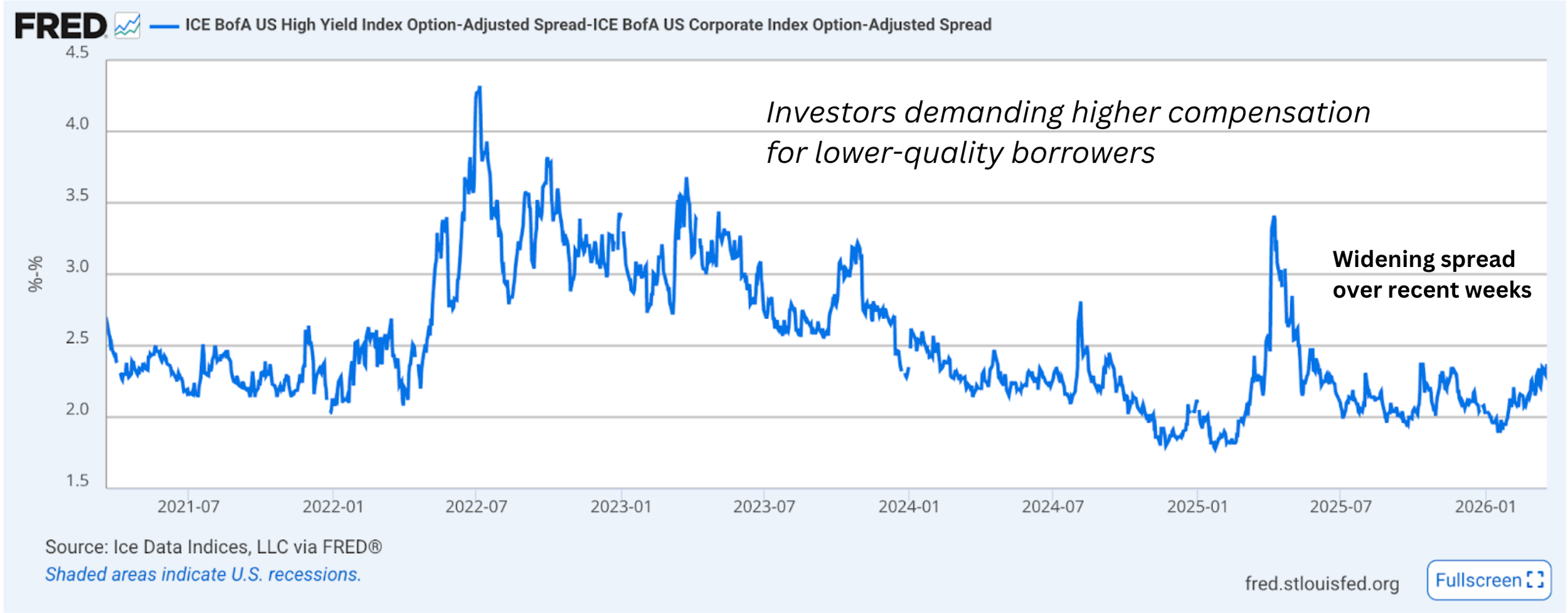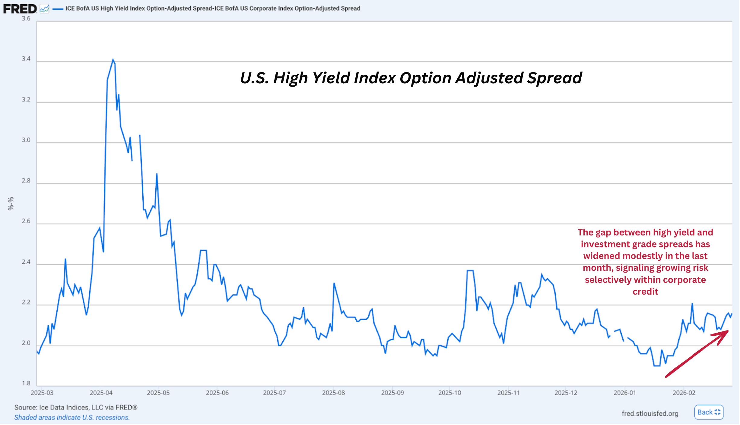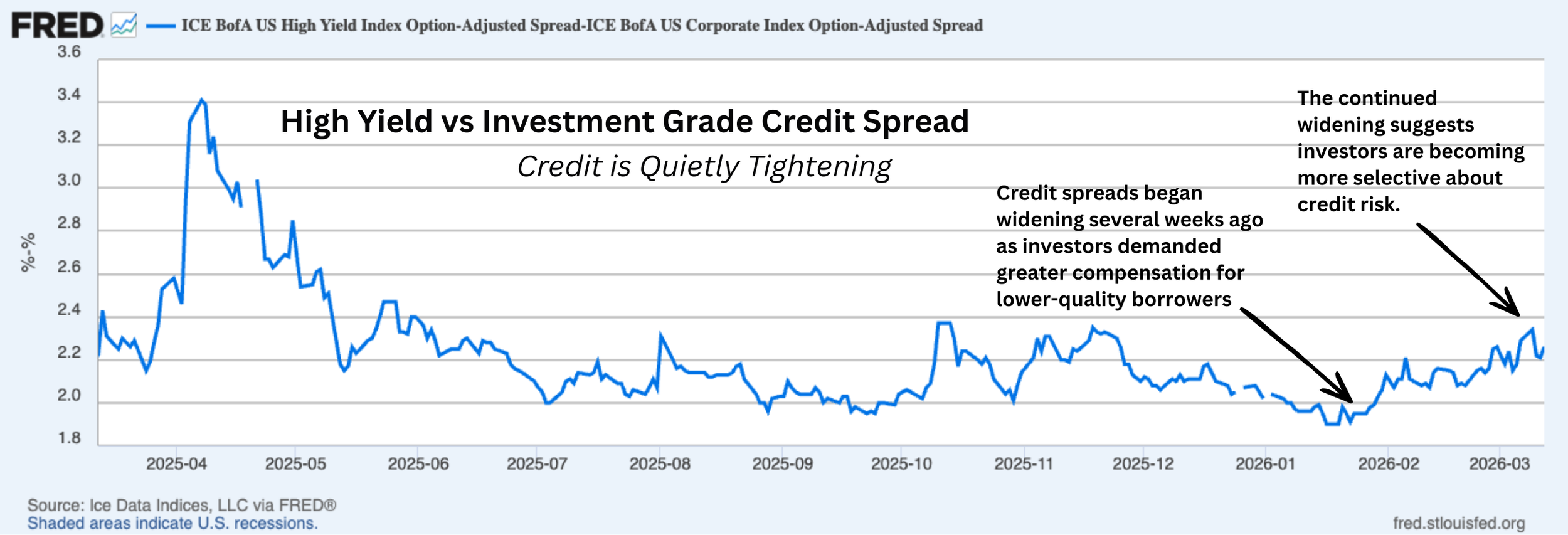 Credit spreads (High Yield vs Investment Grade) are widening