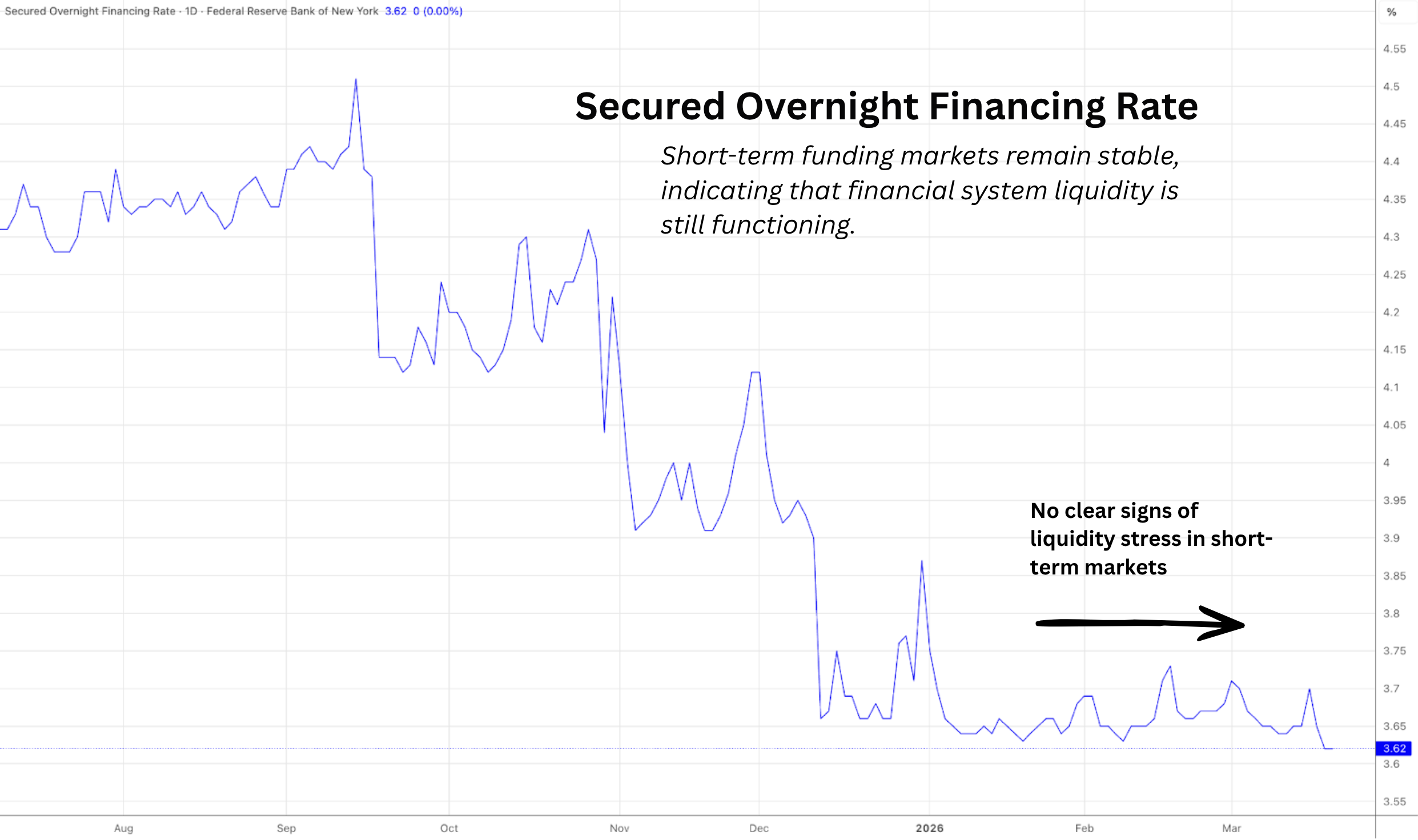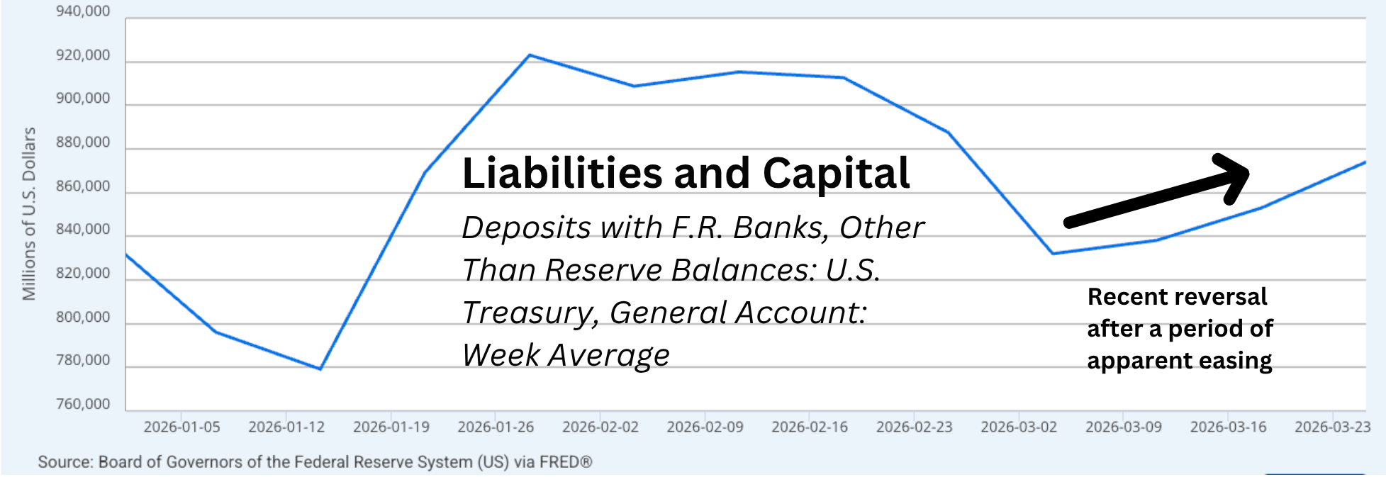 A few weeks ago, the trajectory suggested liquidity might be easing back into the system. That direction has, at least for now, reversed.
