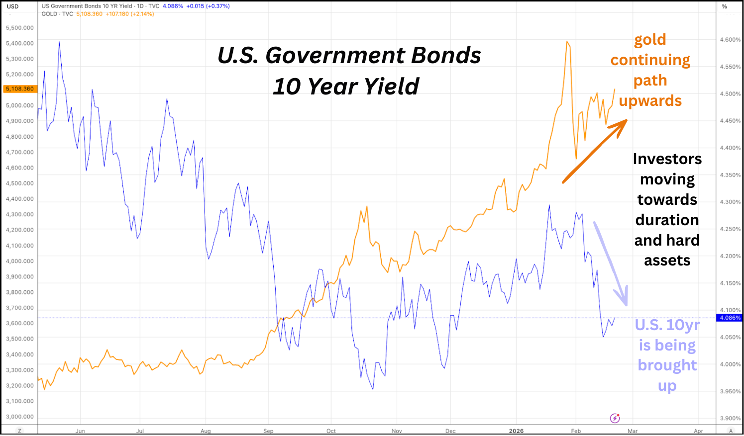 Capital is rotating toward duration and hard value rather than exiting the system altogether.